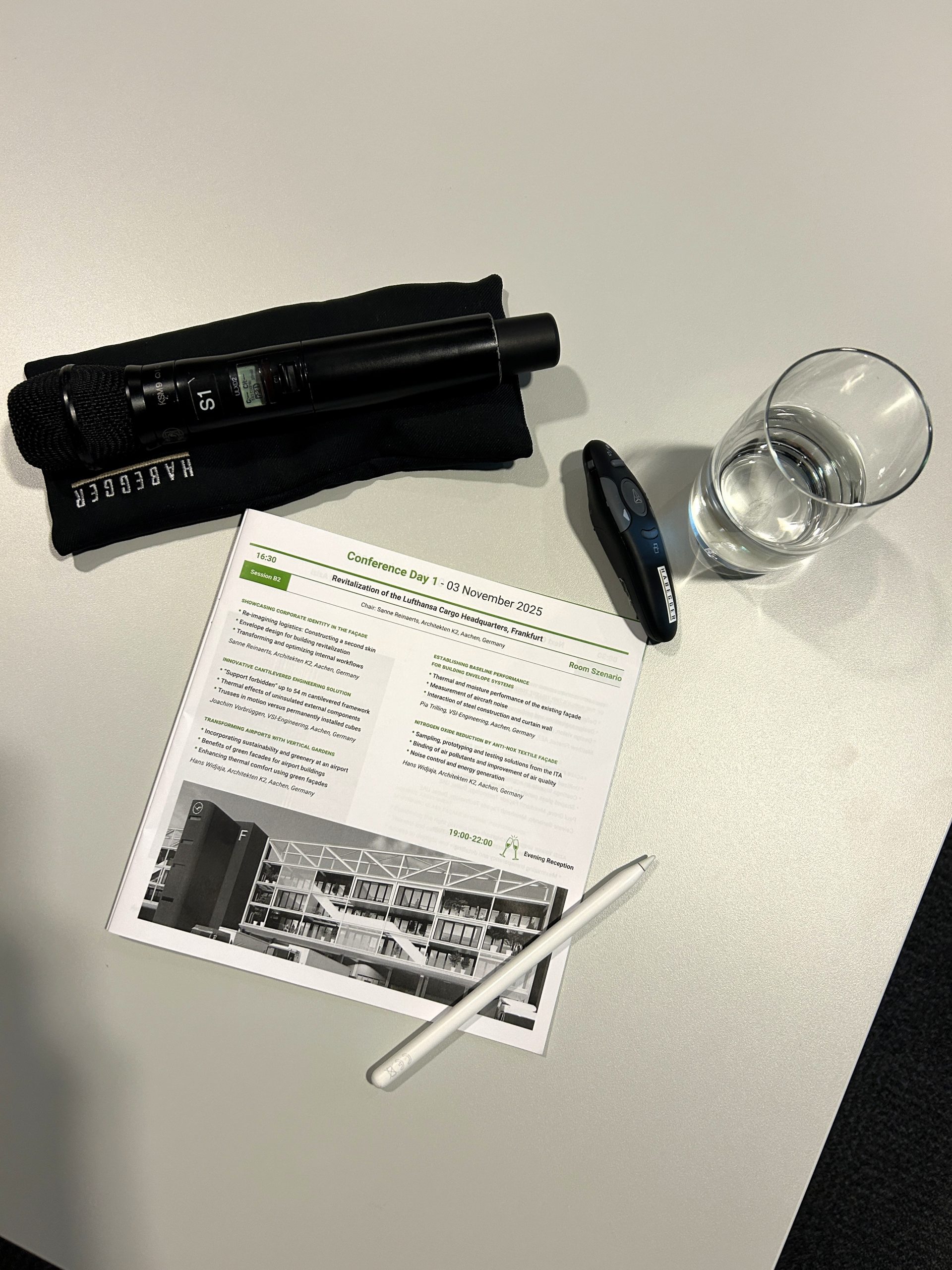 In diesem Jahr präsentierte Architekten K2 erstmals einen eigenen Beitrag. Gemeinsam mit Prof. Dr. Joachim Vorbrüggen und Pia Trilling von VSI Ingenieure stellte das Team das Projekt für Lufthansa Cargo in Frankfurt vor. Die Session zeigte, wie sich nachhaltige Technologien in Fassaden integrieren lassen, während das Upcycling-Konzept ausgewählte Baustoffe erneut nutzbar macht.