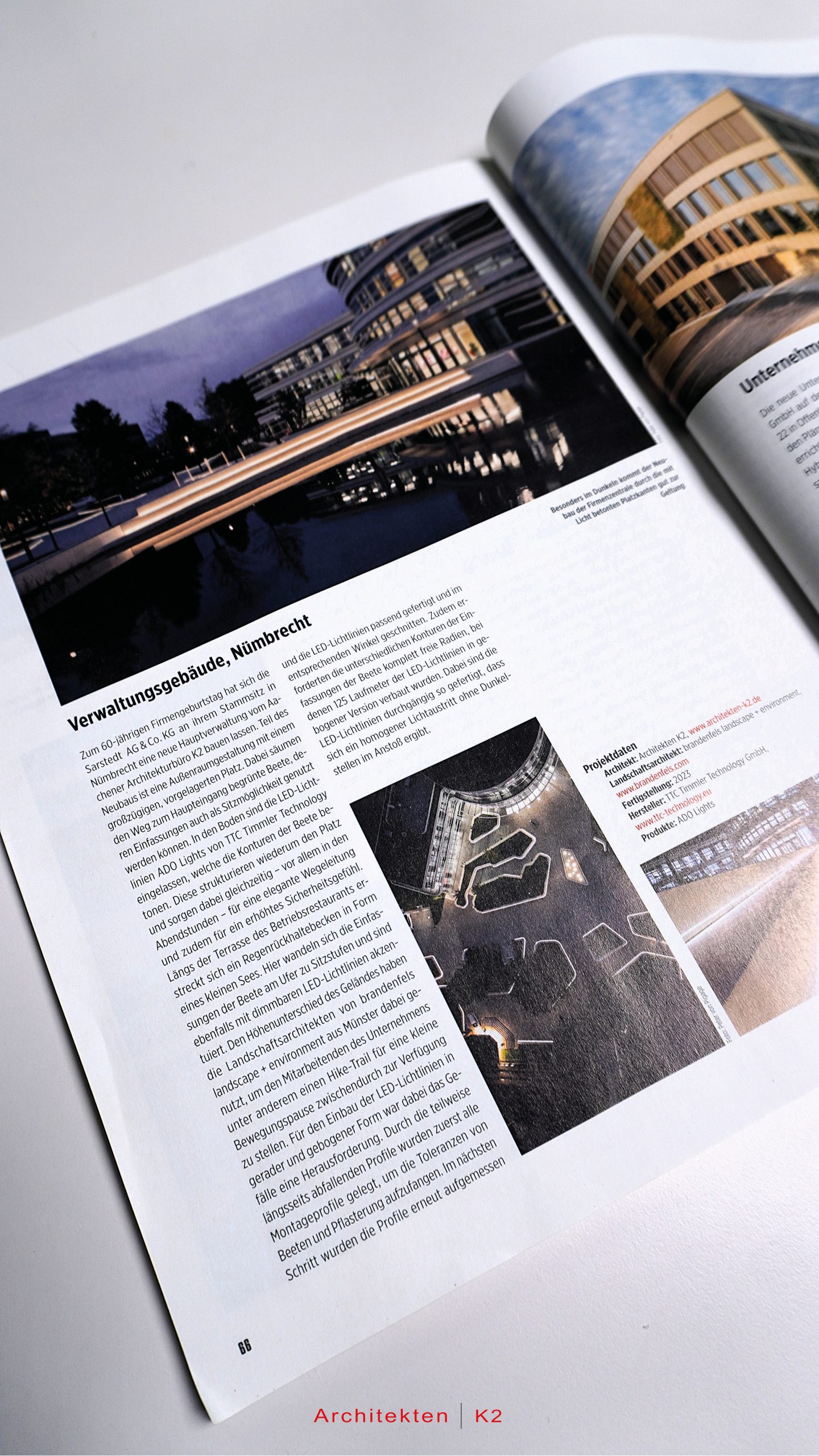 Die Deutsche Bauzeitung (DBZ) berichtete über den Neubau der Hauptverwaltung der Sarstedt AG & Co. KG am Stammsitz in Nümbrecht, den das Aachener Architekturbüro K2 realisierte. Anlass war der 60-jährige Firmengeburtstag.